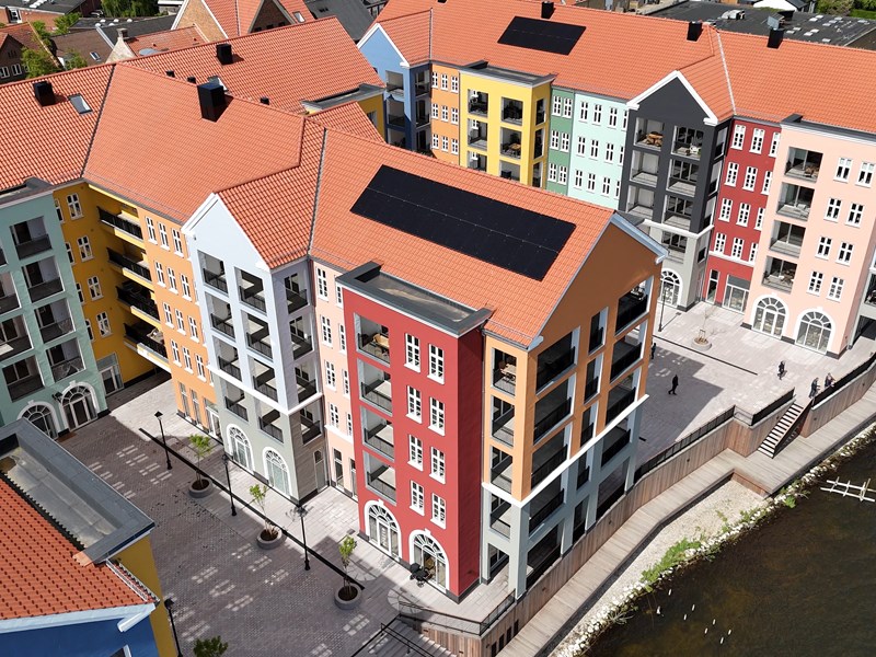 Projektet i Skanderborg består af luksuriøse lejligheder, restauranter og caféer i et byggeri inspireret af Nyhavn i København.