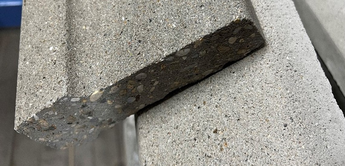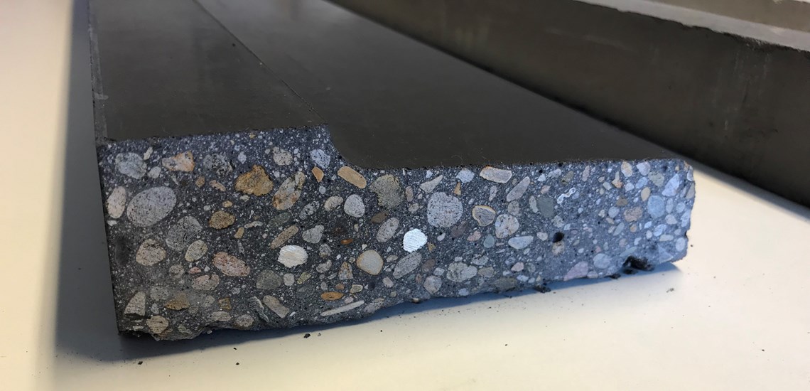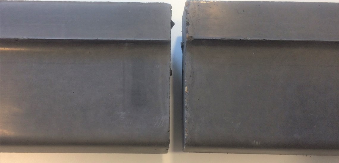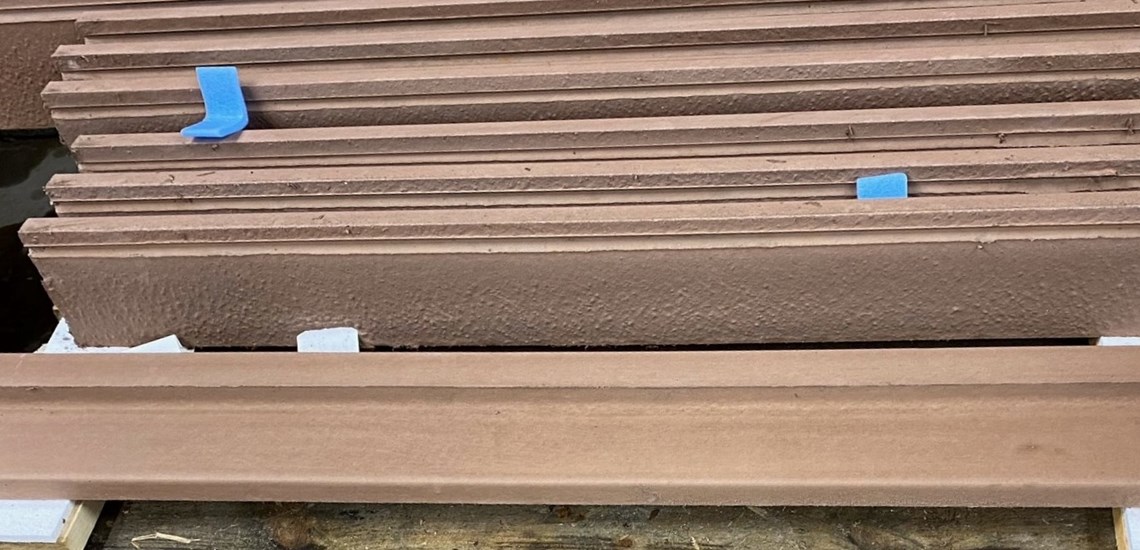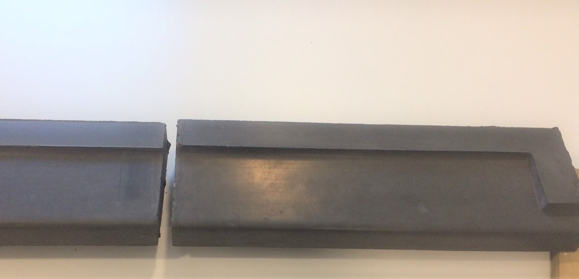 betonsålbænk med endeluk støbt for sig selv, så den kan pålimes ved den ønskede længde.