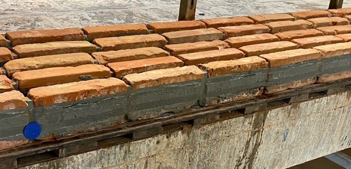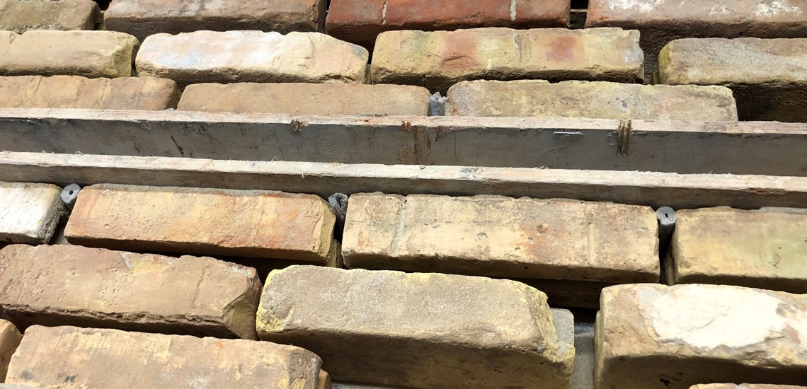 Færdig producerede tegloverliggere i genbrugsmursten