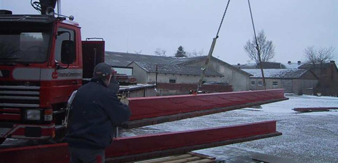 Færdig produceret stål drage på 5,75 meter og 680 kg. lavet til garage port - Videbæk